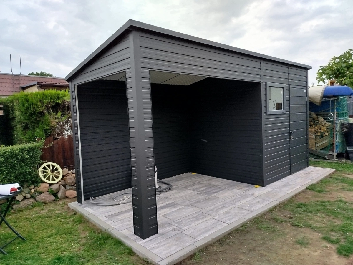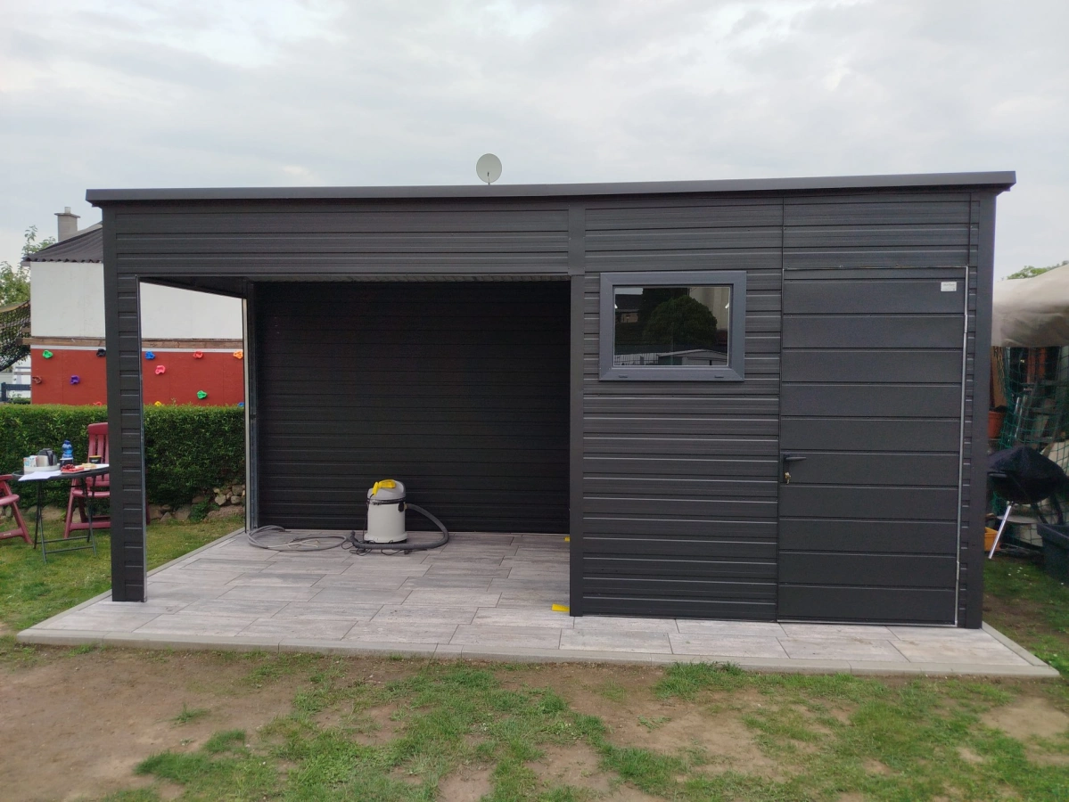 Din tablă galvanizată Din tablă galvanizată Din tablă colorată Din tablă colorată Garaje Premium Garaje Premium Magazie pubele Magazie pubele Carporturi și altele Carporturi și altele