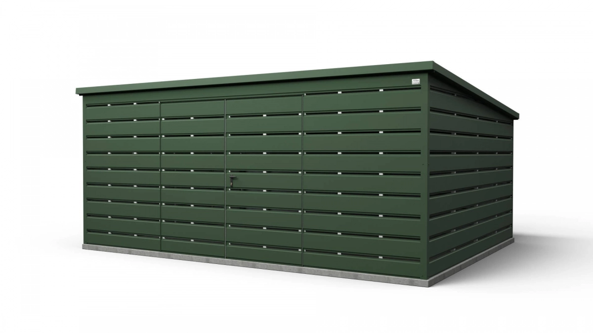 • Poarta lata (standard 2m, dar sunt posibile si alte dimensiuni) vă permite scoaterea și introducerea pubelelor de gunoi cu usurință.